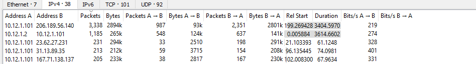 Now lets investigate more into our host and see what kind of conversations have been unfolding. Now I usually analyze conversation from most to least packets exchanged.